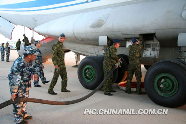 7月14日,随着最后一架伊尔-76在黑龙江齐齐哈尔机场着陆后,参加“和平使命-2009”中俄联合军演的俄方空军参演飞机全部抵达演习地域。(戴景涛 姜秀宾 王金龙)