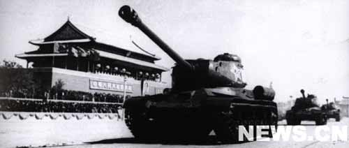 图为1951年开国大典阅兵式:坦克方队。(图片来源:新华网)(资料图片)