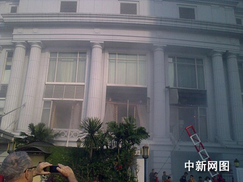 7月17日,印尼首都雅加达两家豪华酒店发生爆炸事件。该事件造成9人死亡多人受伤。图为记者拍摄到的爆炸事件现场照片。Michael 摄
