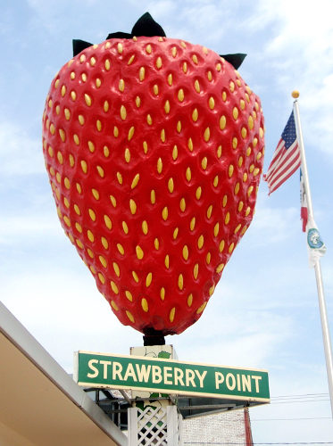 这个高达15英尺的草莓树立在美国爱荷华州小镇的市政厅门口,用来标识这个城市的名字“草莓”