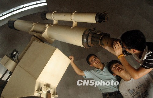 7月17日,位于山东省郯城县第二中学的“天文台”免费向天文爱好者开放。“追日族”们可提前到“天文台”了解日全食的有关知识和模拟整个观测过程。中新社发 房德华 摄