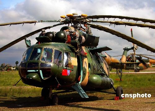 参加“和平使命2009”联合反恐军事演习的中国军队陆军航空兵部队,7月20日官兵们在认真检测即将参加演习的直升机群,以确保在演习中万无一失。这支部队在演习中担负着地面攻击配合、投送兵力、医疗救护等任务。这次演习,双方以陆军和空军为主,中方参演部队包括1个陆军战斗群和1个空军战斗群,俄方参演兵力包括1个陆军加强摩步营、1个空降突击连和部分空军兵力。中新社发 宋吉河 摄