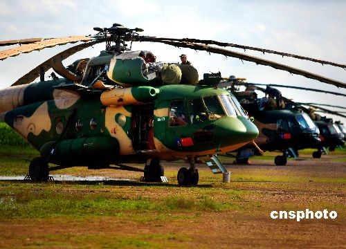 参加“和平使命2009”联合反恐军事演习的中国军队陆军航空兵部队,7月20日官兵们在认真检测即将参加演习的直升机群,以确保在演习中万无一失。这支部队在演习中担负着地面攻击配合、投送兵力、医疗救护等任务。这次演习,双方以陆军和空军为主,中方参演部队包括1个陆军战斗群和1个空军战斗群,俄方参演兵力包括1个陆军加强摩步营、1个空降突击连和部分空军兵力。中新社发 宋吉河 摄
