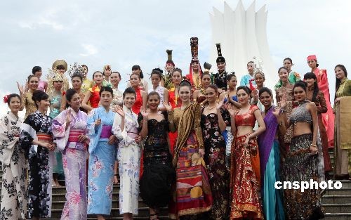 图为各国模特身穿民族服饰展示风采。中新社发 钱兴强 摄