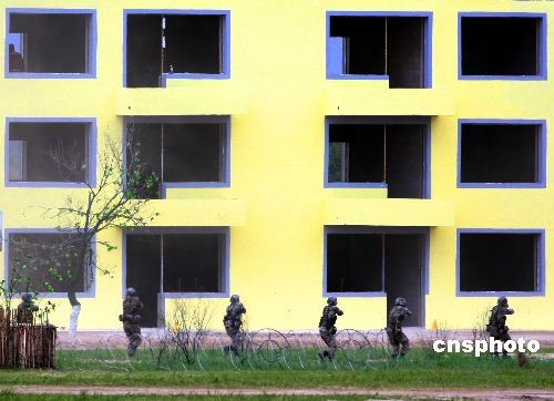 参加“和平使命2009”联合反恐军事演习的中国和俄罗斯部队,目前正在针对任务紧张训练。这次演习双方以陆军和空军为主,中方参演部队包括1个陆军战斗群和1个空军战斗群。俄方参演兵力包括1个陆军加强摩步营、1个空降突击连和部分空军兵力。演习将从7月22日至7月26日按战略磋商、战役准备和战役实施三个阶段进行。战役实施阶段,两军将重点演练联合封控、立体突破、机动歼敌和纵深围剿四个内容。“和平使命——2009”联合演习是中俄两国继“和平使命——2005""和平使命——2007”演习后,在上海合作组织框架内举行的又一次大规模反恐演习。中新社发 宋吉河 摄