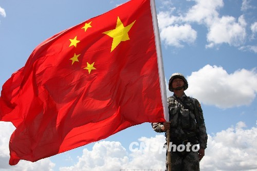 7月21日,参加“和平使命—2009”联合反恐军事演习的俄方参演部队进行分练,中方参演部队予以配合。在80分钟的分练中,进行了 “联合封控、立体突破、机动歼敌、纵深围剿”等内容达到了预期的效果。俄方加强步兵营、空降兵突击连和参演的俄空军各种战机参加了分练。 图为中方参演特种兵。 中新社发 张雷 摄