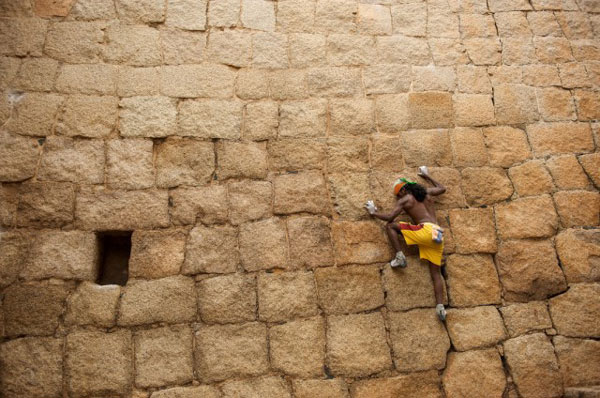 据英国媒体23日报道,居住在印度南部的一位22岁男子Jyothi Raj拥有徒手攀爬高墙的技能,堪比漫画人物“蜘蛛侠”。周末的时候Jyothi就会到当地的旅游景点表演攀爬,每次都吸引了很多游人观看。他是在4年前发现了自己拥有这种不可思议的攀爬能力的。