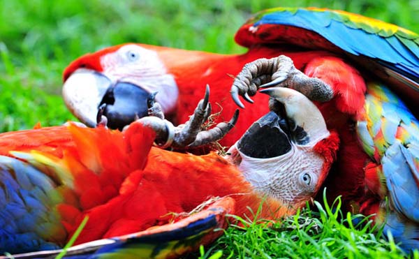 1.在德国西部城市明斯特的一家动物园内,一对金刚鹦鹉尽情地享受着生活。金刚鹦鹉主要分布在墨西哥、中美洲、南美洲及加勒比海地区。