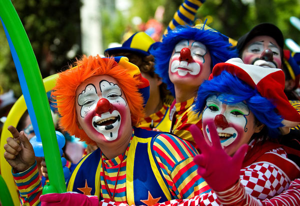 7月22日,几百名“小丑”聚集在墨西哥首都墨西哥城的街头参加一次小丑大游行,给人们带来了欢声笑语。
