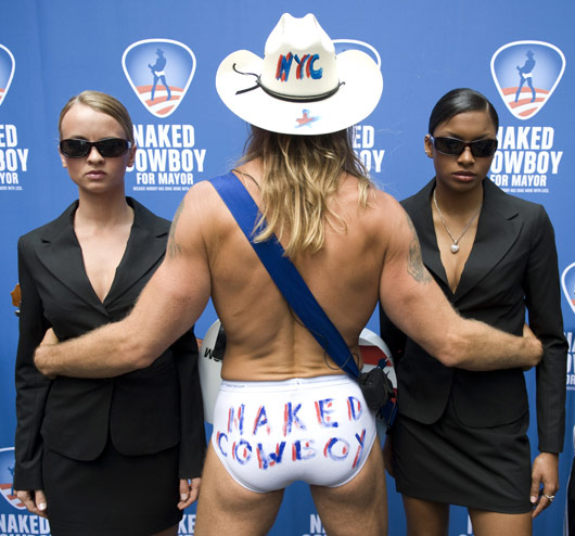 7月22日,在纽约时报广场卖艺多年的“裸体牛仔”罗伯特·布尔克召开新闻发布会,宣布将竞选下任纽约市长。