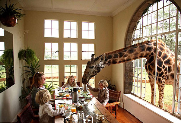 据英国媒体21日报道,肯尼亚的一个家庭多年来把八只长颈鹿当做自己的家庭成员,一起生活。
