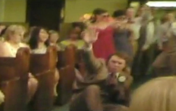 据英国媒体报道,美国明尼苏达州一对新婚夫妇打破教堂婚礼的庄严传统,在礼堂内劲舞,这段欢乐的婚礼片段成为了网上的热播,在网上的浏览量达数百万人次。