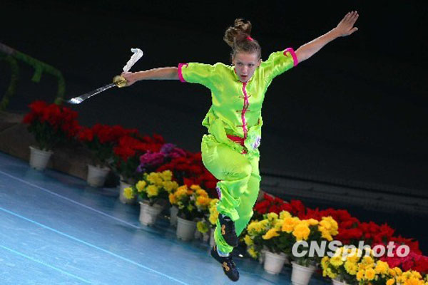 7月27日晚,2009年中俄青少年运动会在北京国家游泳中心“水立方”开幕。本次赛事为期5天,共将进行摔跤、射击、跳水、花样游泳、体操、武术等9个大项、62个小项的比赛。中国和俄罗斯代表团各派出88名青少年运动员参赛。中新社发 富田 摄