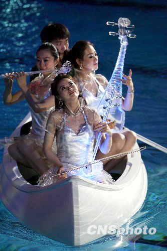 7月27日晚,2009年中俄青少年运动会在北京国家游泳中心“水立方”开幕。本次赛事为期5天,共将进行摔跤、射击、跳水、花样游泳、体操、武术等9个大项、62个小项的比赛。中国和俄罗斯代表团各派出88名青少年运动员参赛。中新社发 富田 摄