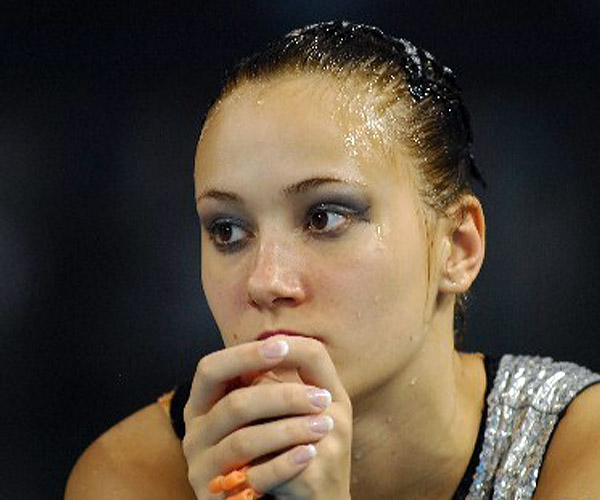 图为俄罗斯花样游泳队的一名姑娘若有所思。