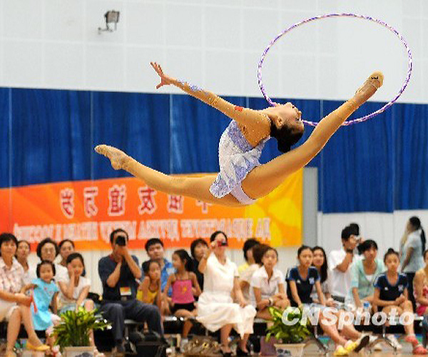 7月29日,“2009中俄青少年运动会”艺术体操预赛在北京体育大学综合馆举行,中俄两国的小姑娘们在比赛中发挥出了优异的水平。中新社发 侯宇 摄
