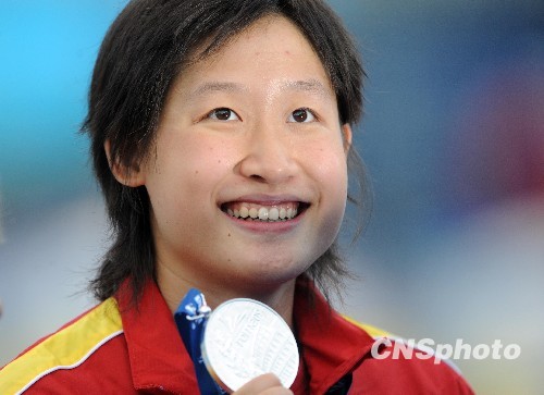 罗马时间7月30日晚上,罗马游泳世锦赛女子200米蝶泳决赛中,中国选手刘子歌夺得银牌。图为刘子歌展示银牌。中新社发 廖攀 摄