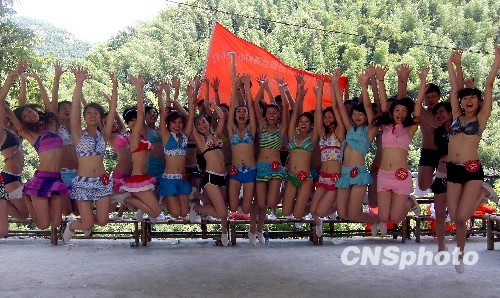 7月23日,“2009中国新丝路模特大赛”娄底赛区复赛在湖南省一国家森林公园飞水崖景区举行。火辣的泳装秀,激情演绎夏季时尚。中新社发 郭国权 摄