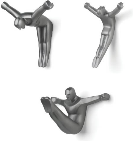 这些墙钩模拟了男子运动员做体操动作的样子, 挂钩伸出的胳膊和弯曲的腿可挂衣服、帽子甚至毛巾,墙钩由优质树脂制作而成。