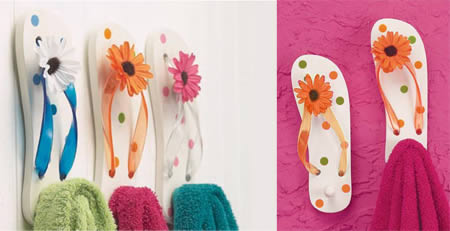 一双双漂亮的拖鞋粘贴在你家的墙上,成为了家居生活一道独特的风景,它们可不是用来冲凉时穿的,而是用于挂毛巾和衣服的墙钩。