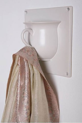 只见一只茶杯的一半从墙里冒出来,它是一个墙钩,女王还用它挂钥匙呢!