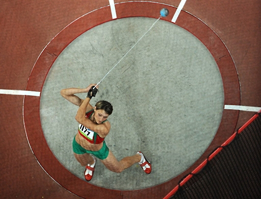 图为北京奥运会链球冠军米安科娃的奋力一掷。
