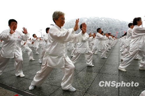 8月8日是中国首个“全民健身日”,全国各地掀起全民健身热潮。当日,北京市万人太极拳表演在奥林匹克公园庆典广场及景观大道举办。经过最终确认,共有33996人完成表演,成功打破了吉尼斯世界纪录。中新社发 富田 摄