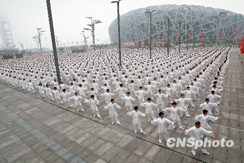 8月8日是中国首个“全民健身日”,全国各地掀起全民健身热潮。当日,北京市万人太极拳表演在奥林匹克公园庆典广场及景观大道举办。经过最终确认,共有33996人完成表演,成功打破了吉尼斯世界纪录。中新社发 富田 摄