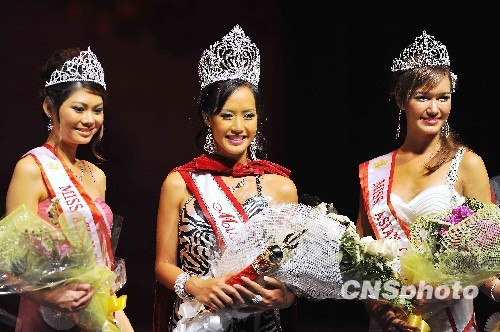 当地时间8月8日,全美亚裔小姐选美揭晓,来自纽约的二十七岁老挝裔佳丽艾米·蝉察法翁(中)夺冠,加州的越南裔维多利亚·潘(右)和华裔罗小眉(左)分别获得加州亚裔小姐和旧金山亚裔小姐称号。中新社发 陈钢 摄