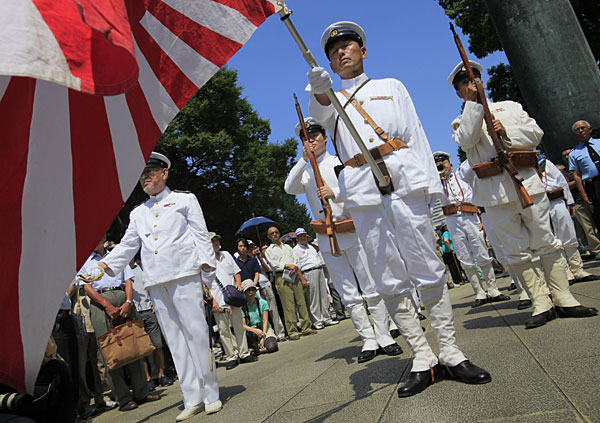 8月15日是二战日本投降64周年纪念日,日本约40名跨党派议员参拜靖国神社。其中自民党的两位前首相小泉纯一郎和安倍晋三也在今天参拜了靖国神社。日本右翼分子身着二战时期日军军装为战犯招魂。