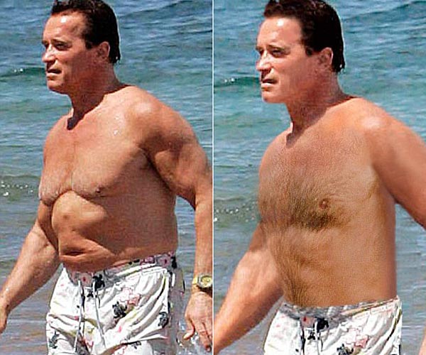 图为阿诺德施瓦辛格被修改了腹部和胸毛的照片。