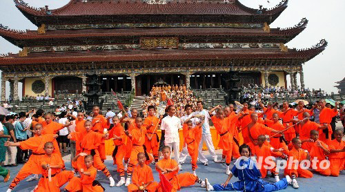 图为各国佳丽南海禅寺观少林功夫。中新社发 钱兴强 摄