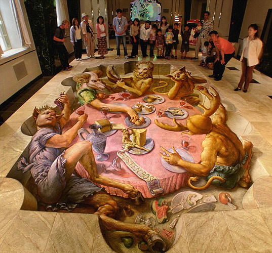 据英国媒体20日报道,来自意大利的街头艺术家Kurt Wenner在世界上30多个国家创作过街头三维立体画,这些图画栩栩如生似乎有着神奇的魔力,让人看起来很容易产生幻觉。