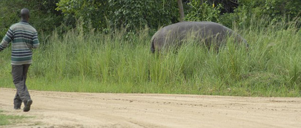 据英国媒体23日报道,乌干达猎场一只大河马在吃午餐时遭到一名看守人打扰,河马怒了,突然冲了出来,看守人被吓得落荒而逃。