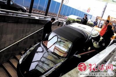 上海“外滩18号”门口的南京东路地道2009年3月发生惊险一幕。一辆保时捷轿车在门口停车时,因驾驶员操控失误,导致车辆驶入人行地道内。发现险情后驾驶员及时刹车,才勉强将车悬在地道入口处。