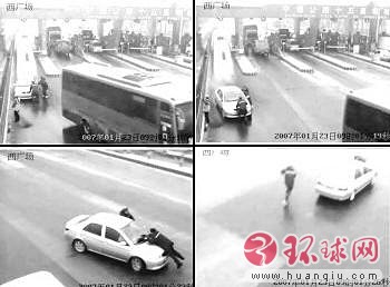 疯狂女司机冲卡 顶着收费员狂奔3公里