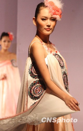 9月4日晚,“迪尚”第七届中国时装设计大赛成果奖终评在山东威海举行。中国时装设计大赛成果奖评选自1998年设立以来,历经六届,伴随着中国时尚界十二年的步伐,先后有不少设计师凭借中国时装设计大赛成果奖的资助赴法国、意大利、新加坡等地学习深造,更涌现出一大批活跃在当今时尚界的优秀青年设计师。图为模特展示参赛设计师作品。中新社发 钱兴强 摄