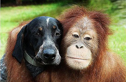 猩猩与布鲁泰克猎犬“义结金兰”。