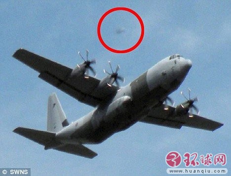 2009年7月英国境内上空发现一个神秘圆形飞行物紧紧盘旋在英国皇家空军“大力士”运输机周围。当时阳光明媚,这个圆形飞行物飞穿英国军事基地时并未闪光,此后也并未遭遇此类事件。目击者约翰·鲍威尔(John Powell)看到这一银色飞行物时,立即用照相机将它拍摄下来。据悉,鲍威尔是一位56岁退休的学校老师,当时他正在花园里种植花卉,他注意到当“大力士”运输机飞过威尔特郡莱恩哈姆空军基地时,阳光照耀在一个不明飞行物体上。