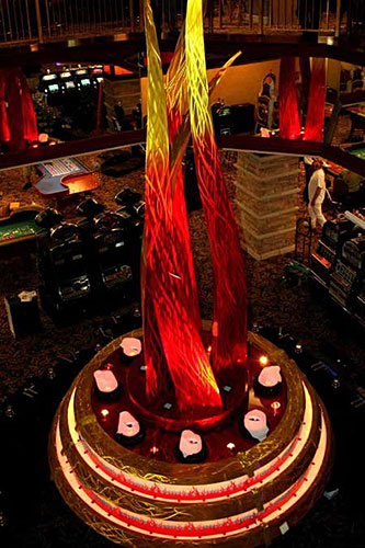 “火湖”的“火焰”:在美国俄克拉何马州的这家名为“火湖”的大赌场内,矗立着一束两层楼高、玻璃打造的“火焰”。