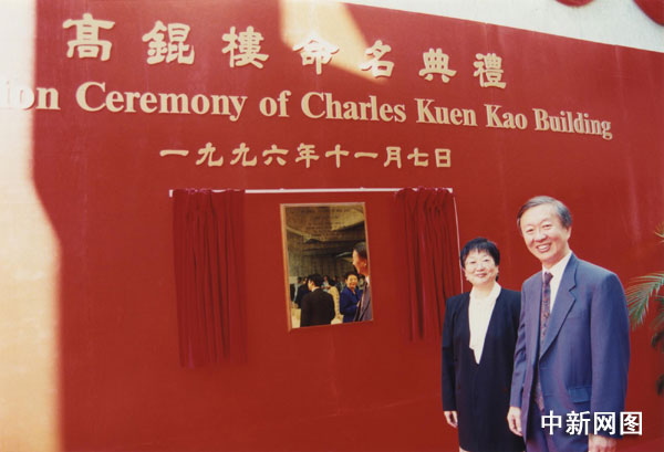 香港中文大学前任校长高锟一九九六年在中大“高锟楼”命名典礼上。