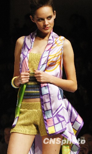 图为模特展示嵊州中国真丝产品2010春夏流行趋势时装设计作品。中新社发 钱兴强 摄