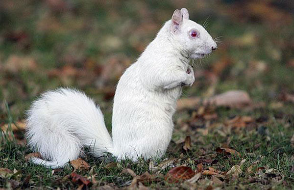 这只松鼠居住在在英国南克罗伊登休闲公园,居然也得了白化病。