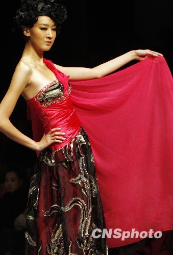图为模特展示著名设计师刘薇作品。中新社发 钱兴强 摄