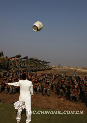 秋高气爽好练兵,训练场上歌声飞。今天,济南军区某装甲师战士业余文艺演出队为驻训官兵献上了一台精彩的节目。