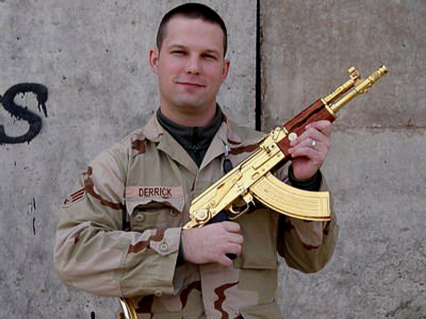 图为驻伊拉克美军展示了萨达姆在执政时期特制的专用武器,一把完全由黄金打造的AK-47步枪,这也是全世界最昂贵的AK-47自动步枪。传说这把黄金制成的AK-47步枪陪伴萨达姆一直到其被美军俘获前,而这把AK-47也见证了伊拉克历史的巨大变迁。