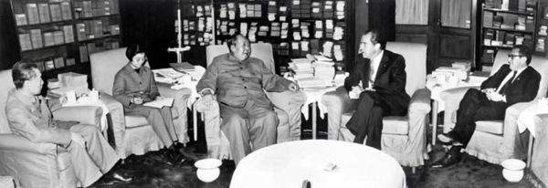 一九七二年二月,美国总统理查德尼克松访华,打开了中美两国关系正常化的大门。图为毛泽东主席在北京会见尼克松。 图片来源:新华网