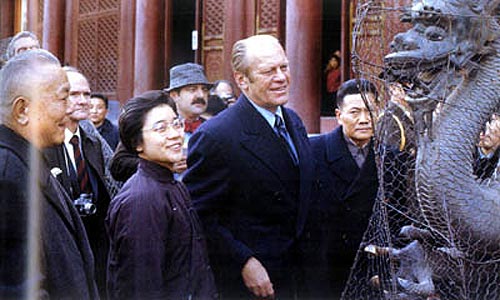 1975年,美国总统杰拉尔德·福特访问中国。图为福特总统一行游览颐和园。图片来源:新华网