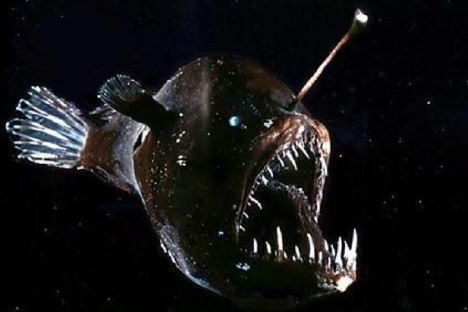 这种鱼生活在深海,雌鱼头部的吻上有一个钓竿状的结构。“钓竿”的末端有一个肉质的突起,而且能发光,琵琶鱼以此来诱捕其他鱼类。
