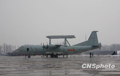 11月13日,北京沙河机场,中国自主研发的、参加国庆60周年首都阅兵的空警-2000型预警机、空警-200型预警机、轰油-6型加油机、轰-6H型轰炸机、歼-11、歼轰-7、教-8、红箭-12、红箭-9地空导弹武器系统发射车等空军主战装备一一排列,展示着中国人民空军发展壮大历史和战斗力发展新水平。空警200。中新社发 国刚 摄